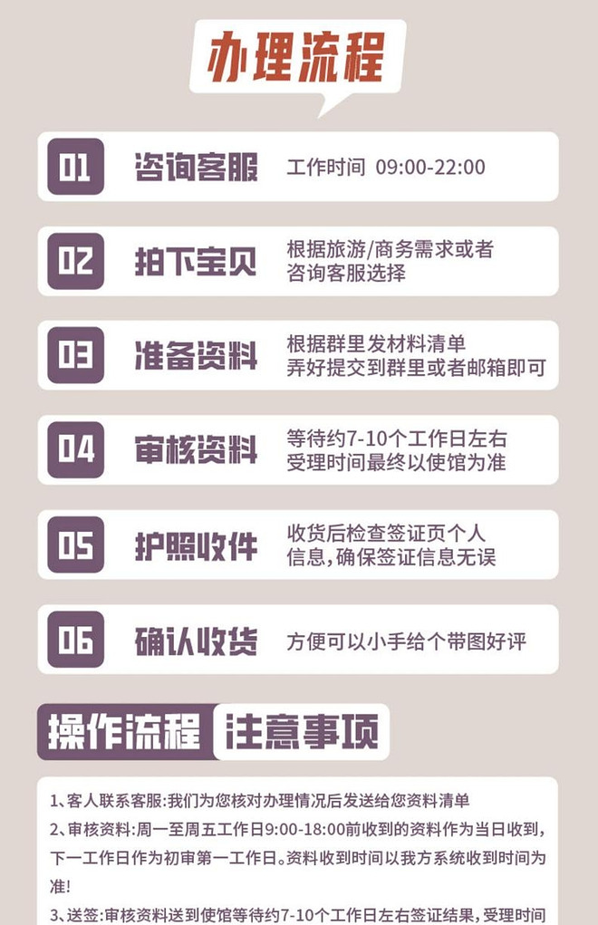 3、我司仅提供签证咨询及协办服务,签证的最终签署权归领事馆/使馆签证官所有。若因您本人资料的问题导致拒签,我公司概不承担责任。
