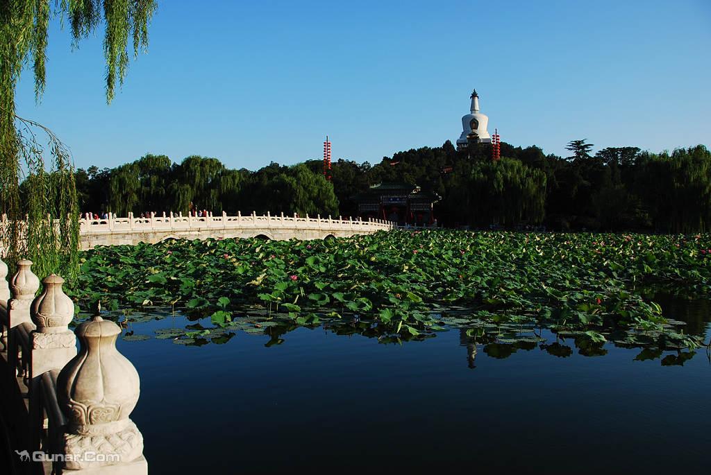 北海公园位于北京市中心区,城内景山西侧,在故宫的西北面,与中海、南海合称三海。这里原是辽、金、元建离宫,明、清辟为帝王御苑,是中国现存最古老、最完整、最具综合性和代表性的皇家园林之一。 北海公园继承了中国历代的造园传统,博采各地造园技艺所长,兼有北方园林的宏阔气势和江南私家园林婉约多姿的风韵,并蓄帝王宫苑的富丽堂皇及宗教寺院的庄严肃穆,气象万千而又浑然一体,是中国园林艺术的瑰宝。 北海的建设源于一个古老的神话:据说,浩翰的东海上有三座仙山,叫做蓬莱、瀛洲、方丈;山上住着长生不死的神仙。秦始皇统一中国后,派方士徐福前往东海寻找不死药,可一无所获。到了汉朝,汉武帝也做起了长生不死之梦,可寻找仍然没有结果,于是下令在长安北面挖了一个大水池,名“太液池”,池中堆起三座假山,分别以蓬莱、濒洲、方丈三仙山命名。自此以后,历代皇帝都喜欢仿效“一池三山”的形式来建造皇家宫苑。北海采取的正是这种形式——北海象征“太液池”,“琼华岛”是蓬莱,原在水中的“团城”和“犀山台”则象征瀛洲和方丈。园中有“吕公洞”、“仙人庵”、“铜仙承露盘”等许多求仙的遗迹。