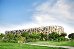 国家体育场即“鸟巢”位于北京奥林匹克公园,建筑面积约26万平方米,可容纳观众10万人,承担2008北京奥运会田径、足球两大项目的比赛任务,同时承担奥运会开幕式、闭幕式任务。奥运会后成为北京市民广泛参与体育活动及享受体育娱乐的大型专业场所,并成为具有地标性的体育建筑和奥运遗产。 国家体育场主体建筑呈空间马鞍椭圆形,南北长333米、东西宽294米的,高69米。主体钢结构形成整体的巨型空间酷似“鸟巢”的结构。体育场外壳采用可作为填充物的气垫膜,使屋顶达到完全防水的要求,阳光可以穿过透明的屋顶满足室内草坪的生长需要。 人文关怀:鸟巢设计中充分体现了人文关怀,碗状座席环抱着赛场的收拢结构,上下层之间错落有致,无论观众坐在哪个位置,和赛场中心点之间的视线距离都在140米左右。“鸟巢”的观众席里,还为残障人士设置了200多个轮椅座席。这些轮椅座席比普通座席稍高,保证残障人士和普通观众有一样的视野。赛时,场内还将提供供助听器并设置无线广播系统,为有听力和视力障碍的人提供个性化的服务。
