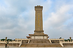 矗立在天安门广场中央的人民英雄纪念碑,通高37.94米,比天安门城楼还高3.24米,是新中国诞生后在广场修建的第一座建筑,也是我国历史上最大的纪念碑。 纪念碑采用17000多块花岗岩和汉白玉砌成,碑基面积3100余平方米,由两层月台、两层须弥座、碑身和碑顶组成。底层月台呈海棠型,东西宽50.44米,南北长61.54米;二层月台为方形,四面设有台阶,精美的汉白玉栏杆环绕四周。月台上边的大须弥座束腰处四面镶嵌着十幅汉白玉浮雕,记述了100多年来中国人民反对帝国主义和封建势力可歌可泣的革命斗争史;上层小须弥座四周镌刻牡丹、菊花、荷花、垂幔等组成的8个花环,表示对先烈的崇敬和永远怀念。