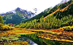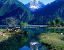 巴松措又名错高湖,藏语中是“绿色的水”的意思,湖面海拔3700多米,湖面面积达6千多亩,位于距林芝地区工布江达县50多千米的巴河上游的高峡深谷里,是红教的一处著名神湖和圣地。虽然巴松错深藏在交通闭塞、远离城镇的山沟里,但它却以其林木繁茂和群山耸立中的那一池碧水而广为外界所知,成为林芝地区最早为人所知的风景之一。 巴松错湖水清澈见底,四周环绕的雪山倒映其中。黄鸭、沙鸥、白鹤等飞禽悄然浮游在水面,湖中则是游鱼如织往来穿梭,更显得一派宁静。距岸边大约一百米处有一座小岛名为扎西岛,传说该岛是一“空心岛”,即岛与湖底是不相连而漂浮在湖水上的。虽然只是个传说,却让人觉得蔚为神奇,你到岛上也不妨试试在岛的某些地方跺跺脚,看是否有空心的感觉。 岛上又有一小巧玲珑面积不足200平方米的寺庙,名为“错宗工巴寺”,始建于吐蕃赞普时期,是宁玛派寺庙,距今已有1500多年的历史了。庙内主供莲花生,在一尊大威德金刚塑像脚下,有两块天然鹅卵石上面有一凹进的圆窝,传说是格萨尔王征战此地时战马留下的蹄印。另外在这个不大的小岛上的其他地方,也密布着许多神奇传说:格萨尔王挥剑于石头上留下的剑痕、树叶上有自然形成的藏文字母的“字母树”、松藏干布在石上留下的足印、莲花生洗脸的神泉……林林总总让人不由得对这充满神迹的小岛顿生景仰之心。