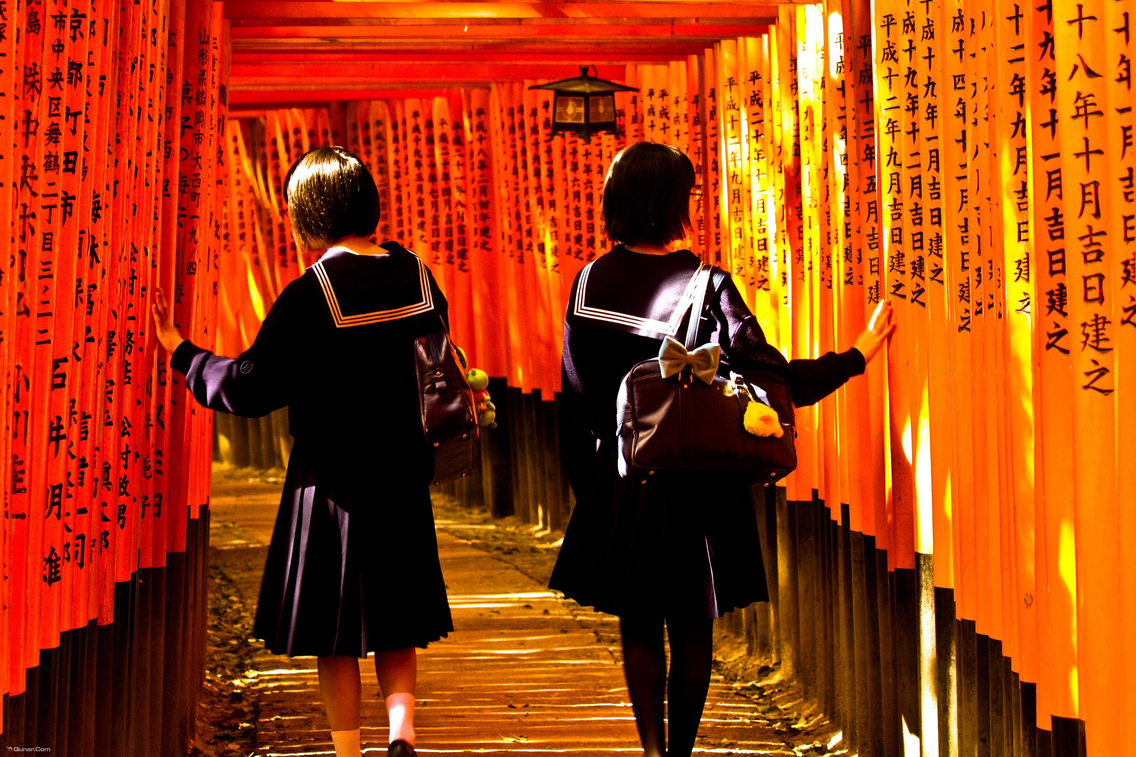伏见稻荷大社建于8世纪的这座神社,在供奉稻荷--神米、日本米酒和昌盛繁荣之神的9000个神社中是最重要的。商人来到神的面前祈求成功和财富。 在巨大的红色牌坊之后,神社的侧面立有石狐狸(狐狸是稻荷在地球上的代表),从这里你开始向上攀登。整个山坡都覆盖着数不清的红色牌坊,它们一个连一个形成了无尽头的隧道。你走在奇特的红色微光里,那微光在位于山岩上的小神社里时隐时现。 地址:京都南部,在稻荷站。常年开放,免费入内。