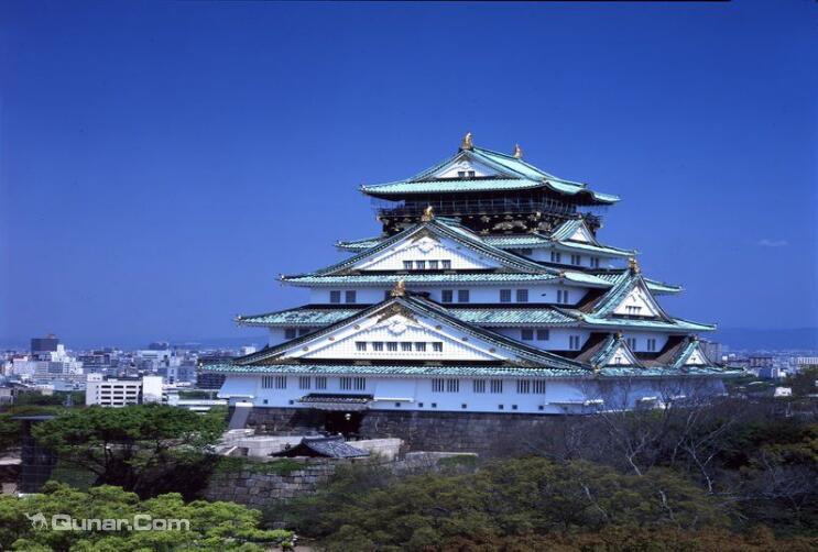 历史悠久的大阪城,系丰臣秀吉于1586年所建,是由雄伟的石墙砌造而成,大阪城公园内城中央耸立着大阪城的主体建筑天守阁,巍峨宏伟,镶铜镀金,十分壮观。登上高五层八阶的天守阁,可以瞭望整个大阪市。如今大阪城已被定为特别史迹。城内的历史博物馆里保存有丰臣秀吉的木像、武器和美术作品等。在西之丸庭园,有一片宽阔的草原和曾遭祝融烧毁并再度重建的外堀、太平门等古迹,是散步休闲的好去处。 现存的大阪城天守阁为后人仿制丰臣秀吉时期的天守阁重制的,其中1~7层为秀吉的生平事迹馆,陈列有秀吉的木像,当时所使用的兵器等等,8层为观景平台,并且有一些纪念品出售。 园内有森林公园、大阪城音乐堂、棒球场等设施。大阪城体育馆是西日本最大的体育馆,经常在此举办演唱会、体育活动、国际会议,或各种大型活动。 每到周末会有许多为成名的乐队来到外护城河边免费的演出,如果运气好还有免费的CD。 城下还设有弓术馆,如果感兴趣,也可以到城下的弓术馆去参观日本弓术。 现存的大阪城公园于1931年由民间集资重建,外观5层,内部8层,高54.8米,7层以下为资料馆,8层为瞭望台。城墙四周建有护城河,附近有风景秀丽的庭园和亭台楼阁。漫步河边,奇花异卉,满目青翠,充满诗情画意。城内樱花门颇为著名,当年大阪城遭遇火灾,仅这一道全部用巨石砌成的樱花门屹立无恙,成为目前仅存的遗迹。 大阪城公园占地广大,光是周围就有五个地铁站包围,再加上不远处的京阪本线的天满桥、京桥两站,以及JR的大阪城公园站,交通算是十分四通八达。 在大阪城公园周围,有中国大使馆、NHK大阪、大阪历史博物馆、丰国神社、难波宫遗迹、大阪造币局(全大阪最富盛名的赏樱去处)、大阪天满宫等著名景点,全部走上一趟可以花上一整天。旁边还有一个在柯南当中颇常出现的场景,就是服部平次的大阪警察总部,目前正在进行扩建工程。