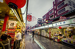 仲见世商店街浅草地区,是从雷门前往浅草寺的参拜道。在长约250米的道路两旁,布满了百余家店铺,出售各种各样的土特产、食品和纪念品,非常热闹。