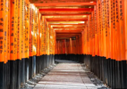 伏见稻荷大社建于8世纪的这座神社,在供奉稻荷--神米、日本米酒和昌盛繁荣之神的9000个神社中是最重要的。商人来到神的面前祈求成功和财富。 在巨大的红色牌坊之后,神社的侧面立有石狐狸(狐狸是稻荷在地球上的代表),从这里你开始向上攀登。整个山坡都覆盖着数不清的红色牌坊,它们一个连一个形成了无尽头的隧道。你走在奇特的红色微光里,那微光在位于山岩上的小神社里时隐时现。 地址:京都南部,在稻荷站。常年开放,免费入内。