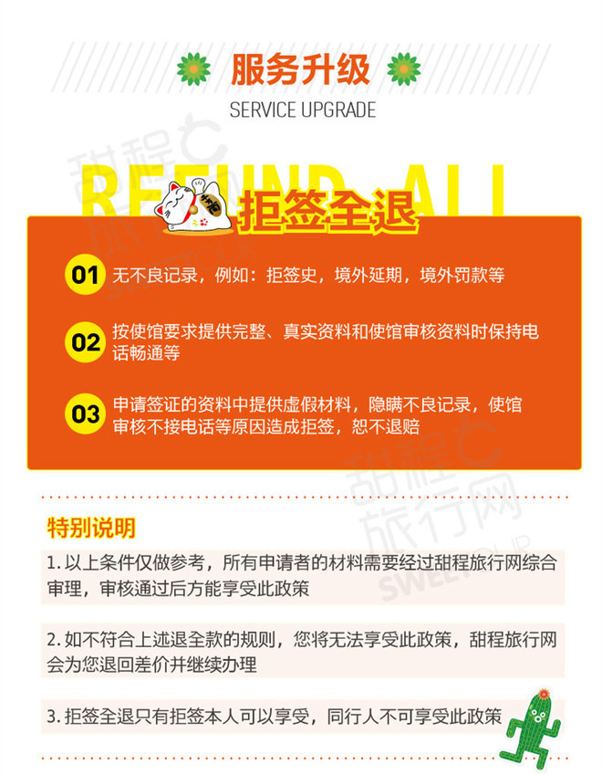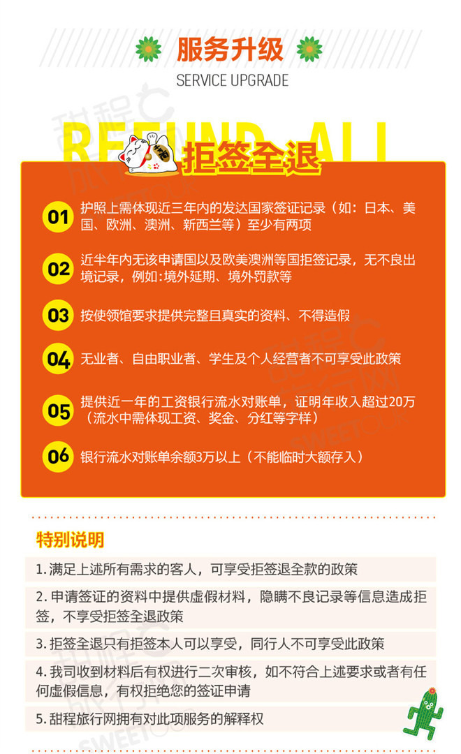 1.满足上述所有需求的客人,可享受拒签退全款的政策