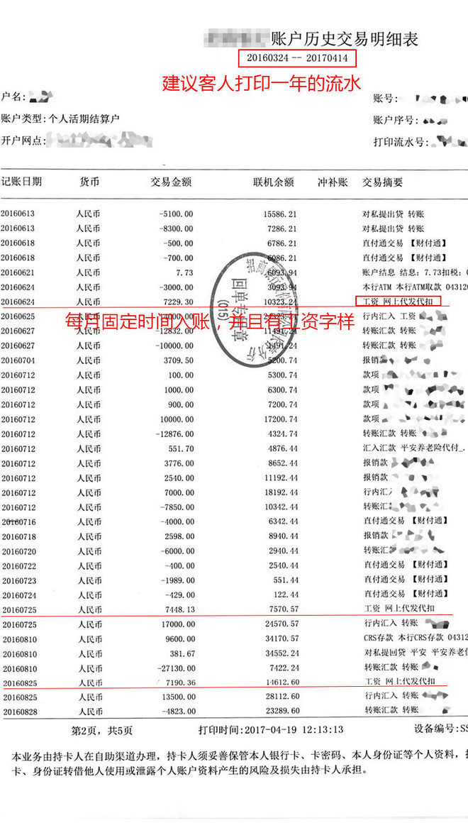 5.提供近一年的工资银行流水对账单,证明年收入超过20万(流水中需体现工资、奖金、分红等字样)