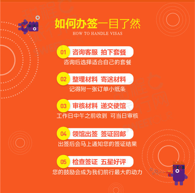 三、我社提供的签证返回时间为使馆给出的平均审理时间,仅供参考,无任何法律依据。期间使馆有权要求您补交材料,抽查面试。如遇使馆节假日,系统故障,旺季,快递等均会延长您收到签证结果的时间,因此请提前预留出充足的时间准备签证。