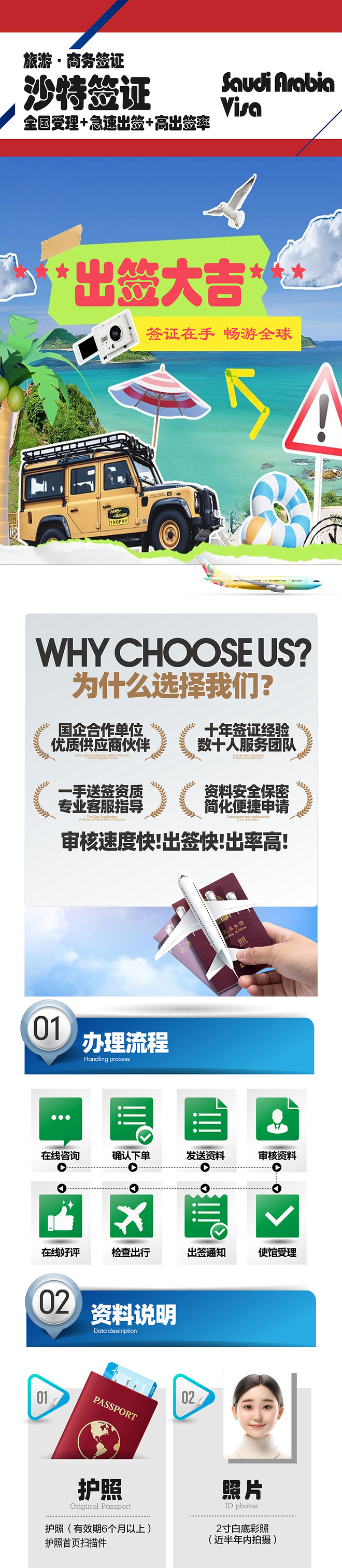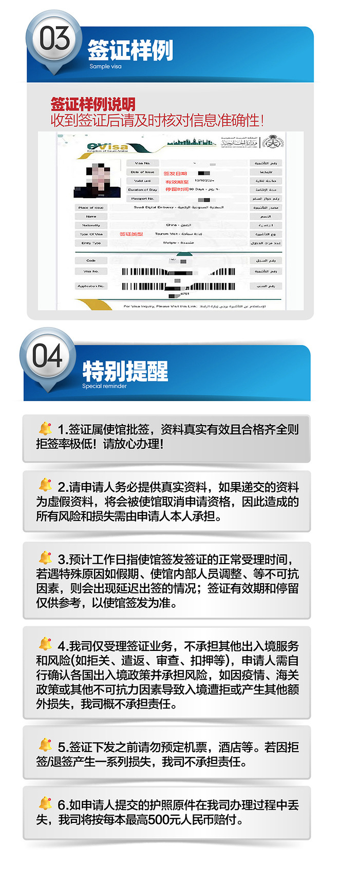 1.沙特签证属使馆批签,资料真实有效+合格齐全则拒签率极低!请放心办理!