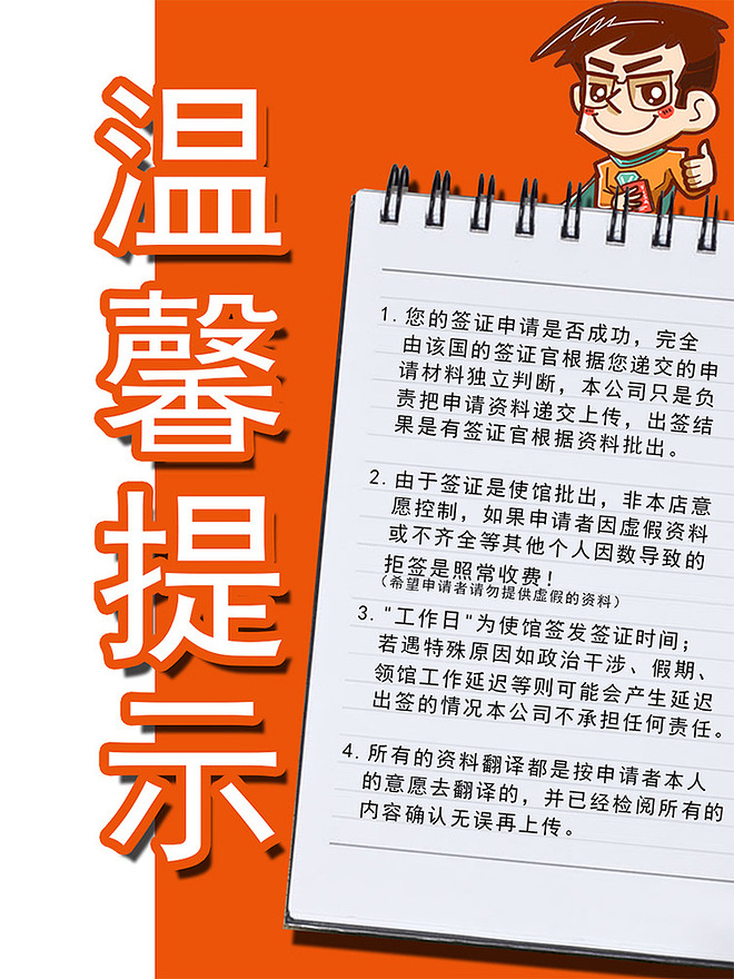 6、签证资料上公布的材料清单仅做参考,详细清单请联系客服人员。