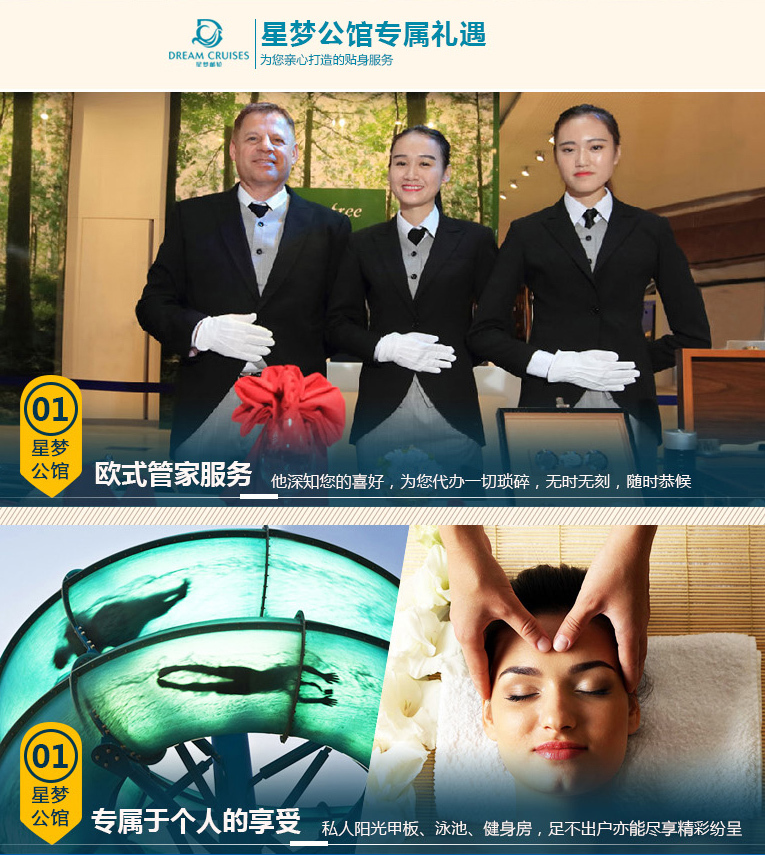 2、 邮轮上提供的一日三餐,下午茶及夜宵(特别注明的收费餐厅及下午茶除外);