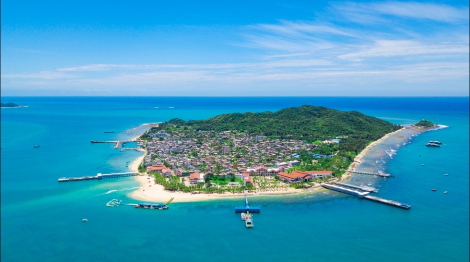 西岛,全称西瑁洲岛,坐落在三亚市西南8海里的三亚湾海域,是海南第二大岛,与东岛恰似在碧波中鼓浪而行的两只玳瑁,“波浮双玳”自古便是三亚的一道胜景。 西岛海洋文化旅游区由西岛海上游乐世界和牛王岭游览区两大版块组成:西岛海上游乐世界是一个汇聚了汇聚海上运动、潜水观光、天然浴场、沙滩娱乐、椰林休闲的动静皆宜的立体海岛景区;牛王岭游览区是一座与西岛几近相连的袖珍小岛,拥有最原始的海岛风光,可以欣赏到壮阔的海天一色、鬼斧神工的礁石景观、雄浑的日出日落以及星罗棋布的军事遗迹。 西岛海洋文化旅游区以其秀美的山体,迷人的珊瑚礁,清澈的海水和松软的海滩,成为三亚旅游观光、休闲度假的胜地之一。