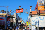 仲见世商店街浅草地区,是从雷门前往浅草寺的参拜道。在长约250米的道路两旁,布满了百余家店铺,出售各种各样的土特产、食品和纪念品,非常热闹。
