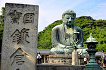 位于古都镰仓的净土宗寺院高德院内的阿弥陀如来青铜坐像俗称镰仓大佛,是古都镰仓的象征,大佛净高11.3米,连台座高13.35米,重约121吨。佛像建造于1252年,大佛的较平的面相、较低的肉髻和前倾的姿势等,具有镰仓时代流行的宋代佛像的风格,是镰仓时期的代表性塑像,被定为日本国宝。与奈良东大寺大佛在后世经历多次补修不同,镰仓大佛基本保持了造像当初的形态,所以非常珍贵。