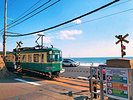 连接藤泽与鎌仓沿着海岸线行驶的复古电车,称为「江之电」。沿途经过知名景点,江之岛、长谷寺、鎌仓大佛,还包括「灌篮高手」平交道场景的鎌仓高校前站。电车行在小镇平面道路紧贴着民宅,海岸线还可欣赏到海天一色的美丽景致,是一条很知名的观光电车。