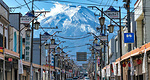 热门话题的富士山景点「本町通」,指的是穿过富士吉田市中心一路延伸至富士山脚的商店街。高耸巨大的富士山、林立于商店街两旁小店的个性招牌和街灯,加上街头交错杂乱的电线,编织成唯此处才有的独特画面。